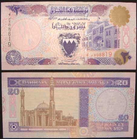 20 Dinars L.1973 16  bahrainp16.jpg (25752 bytes) 2nd printing issue UNC 7.00