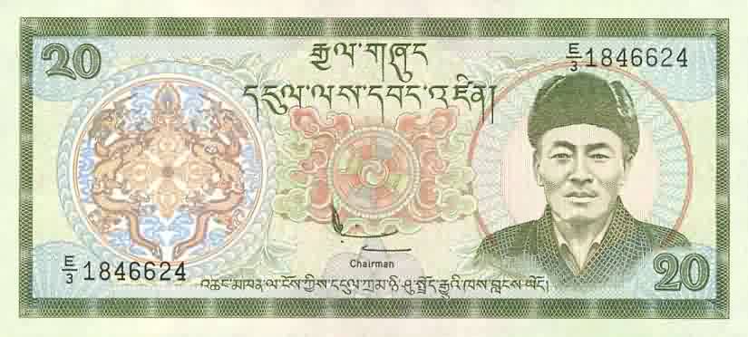 20 Ngultrum ND 16a bhutanp16a.jpg (42259 bytes) sign Dorji Tsering AU+ 3.00