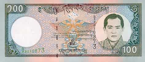 100 Ngultrum ND 25  bhutanp25.jpg (22727 bytes) 4 staple holes as usual on this issue AU 10.00