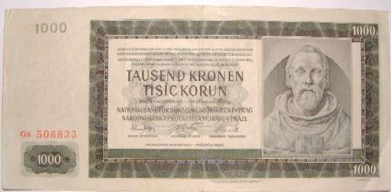 1000 Korun 24.10.1942 15a    bohemp15.jpg (19972 bytes)   GVF 6.00SOLD